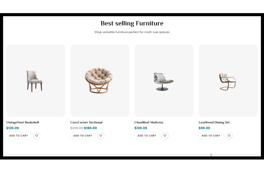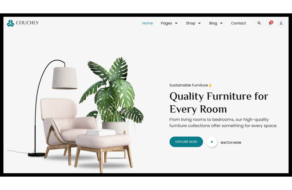 I used WordPress + Elementor + WooCommerce to design Couchly so my client could easily manage products and customers. The layout is smooth, with highlights, best seller sections, and a shop page listing items like a bookshelf, lounge chairs and sofas. Visitors can see prices, explore furniture categories, and enjoy a good shopping experience.