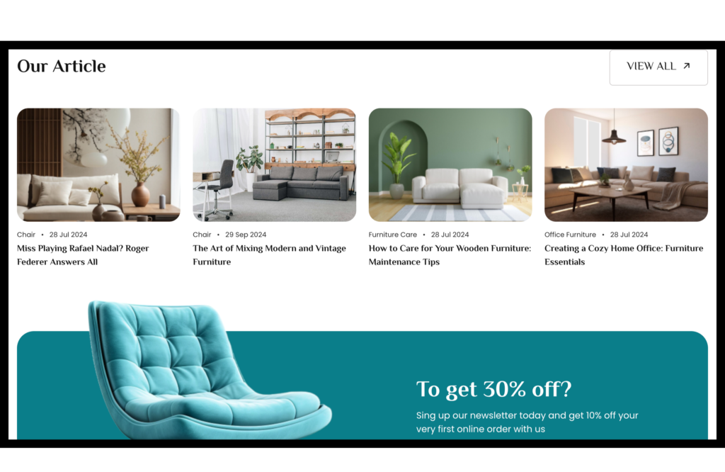 When I started working on Couchly, I was both excited and nervous. I had a clear goal โ€” to build a professional furniture store website for my client that looked modern, clean and easy to use. The site features nice furniture collections like living room sets, mattresses, chairs and more. It also has categories like Bedroom Furniture, Dining Room Furniture, Office Furniture and Outdoor Furniture.